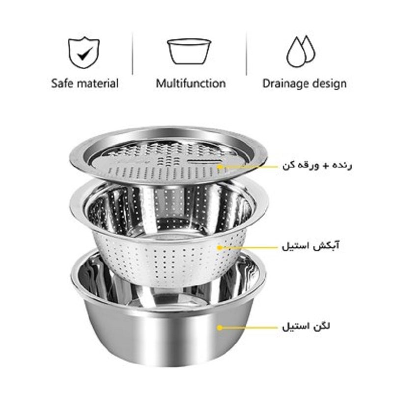 ست 3 پارچه آبکش و لگن و رنده سایز 30 کلاسیک