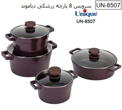 سرویس قابلمه 8 پارچه زرشکی دیاموند یونیک UN8507