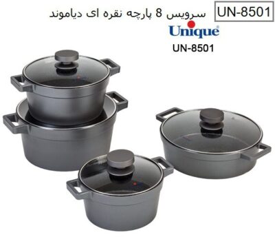 سرویس قابلمه 8 پارچه نقره ای دیاموند یونیک UN8501