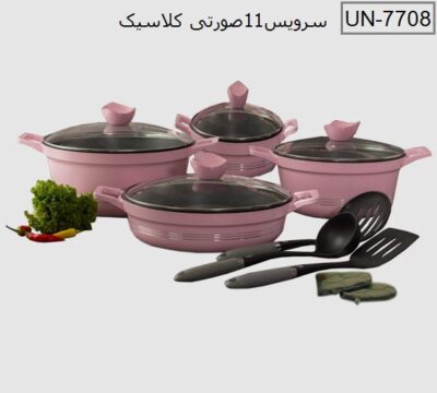 سرویس قابلمه 11پارچه صورتی کلاسیک یونیک UN7708