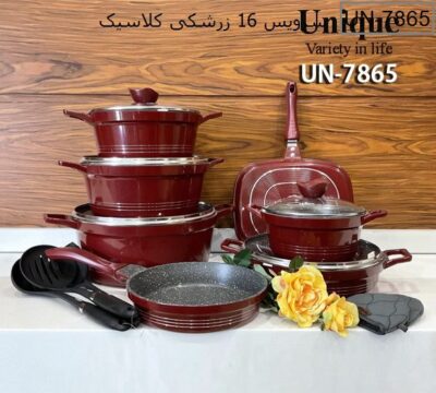 سرویس قابلمه 16پارچه زرشکی کلاسیک یونیک UN7865