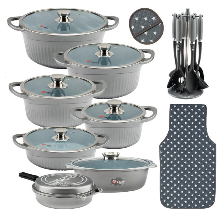 - سرویس قابلمه 25 پارچه گرانیت طرح جرمنی D یک سرویس ظروف پخت و پز عالی برای هر سلیقهای است. این ست شامل چهار قابلمه در سایزهای 20/24/28/32 و تابه