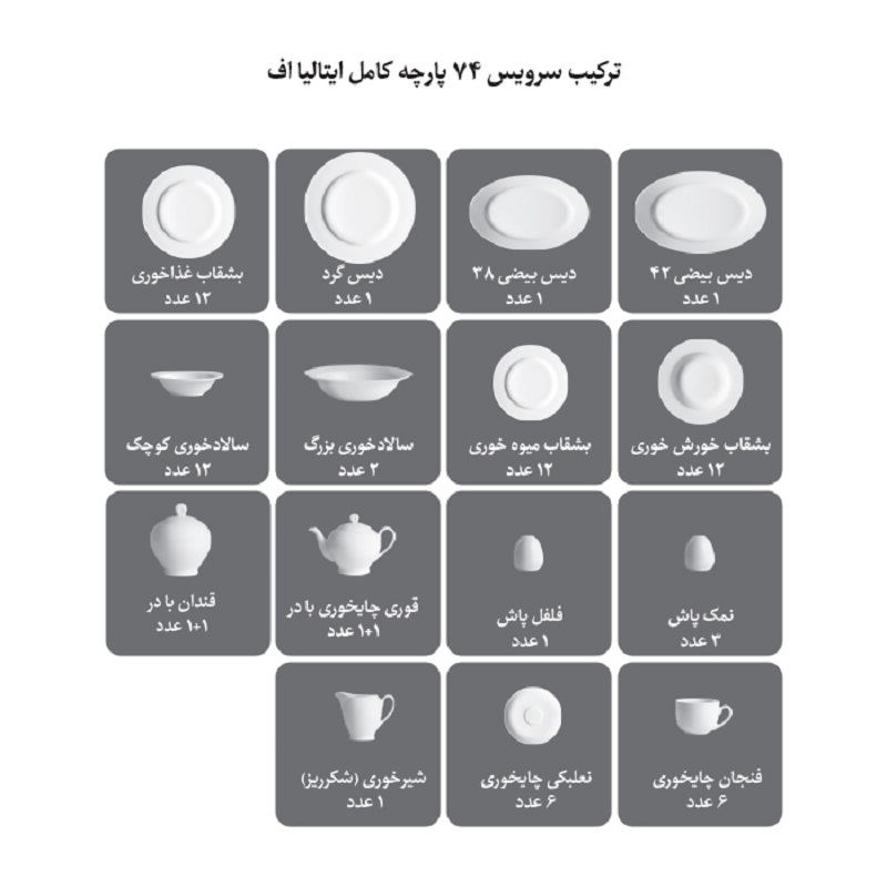 سرویس چینی 74 پارچه ایتالیا اف کامومیلا درجه عالی زرین
