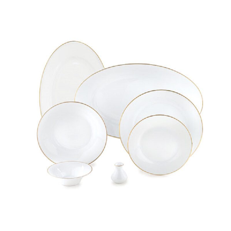 • اقلام : 6 عدد بشقاب برنج خوری _ 6 عدد بشقاب خورشت خوری _ 6 عدد بشقاب میوه خوری _ 6 عدد پیاله 18 سانتی متر _ 6 عدد پیاله 14 سانتی متر _ 1 عدد کاسه سالاد _ 1 عدد دیس بیضی بزرگ _ 1 عدد دیس بیضی کوچک _ 2 عدد نمک پاش