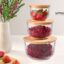 ست کاسه گرد شیشه ای شیار دار درب چوبی لیمون 2212