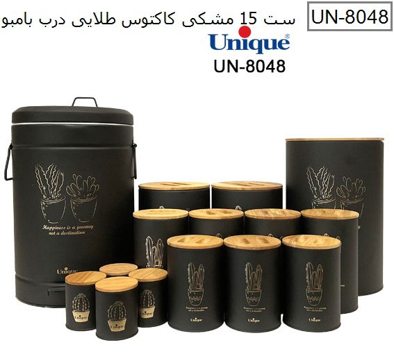 سرویس آشپزخانه 15 پارچه مشکی کاکتوس طلایی درب بامبو یونیک UN8048