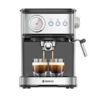 دارای سیستم بخار حرفه ای با روکش استیل برای تهیه فوم شیر,امکان تهیه آب جوش، اسپرسو، فوم شیر، کافه لاته، موکا، کاپوچینو و انواع نوشیدنی های بر پایه اسپرسو,امکان آماده سازی قهوه بصورت تک و دوبل